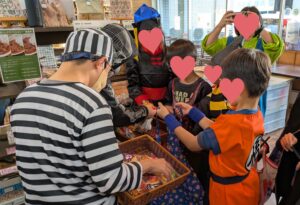 小学生の皆さんが元気に「トリックオアトリート!」と呼び掛けて下さったので