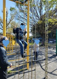 公園内の散策ではお散歩をしたり、公園内の遊具で身体を動かしました。